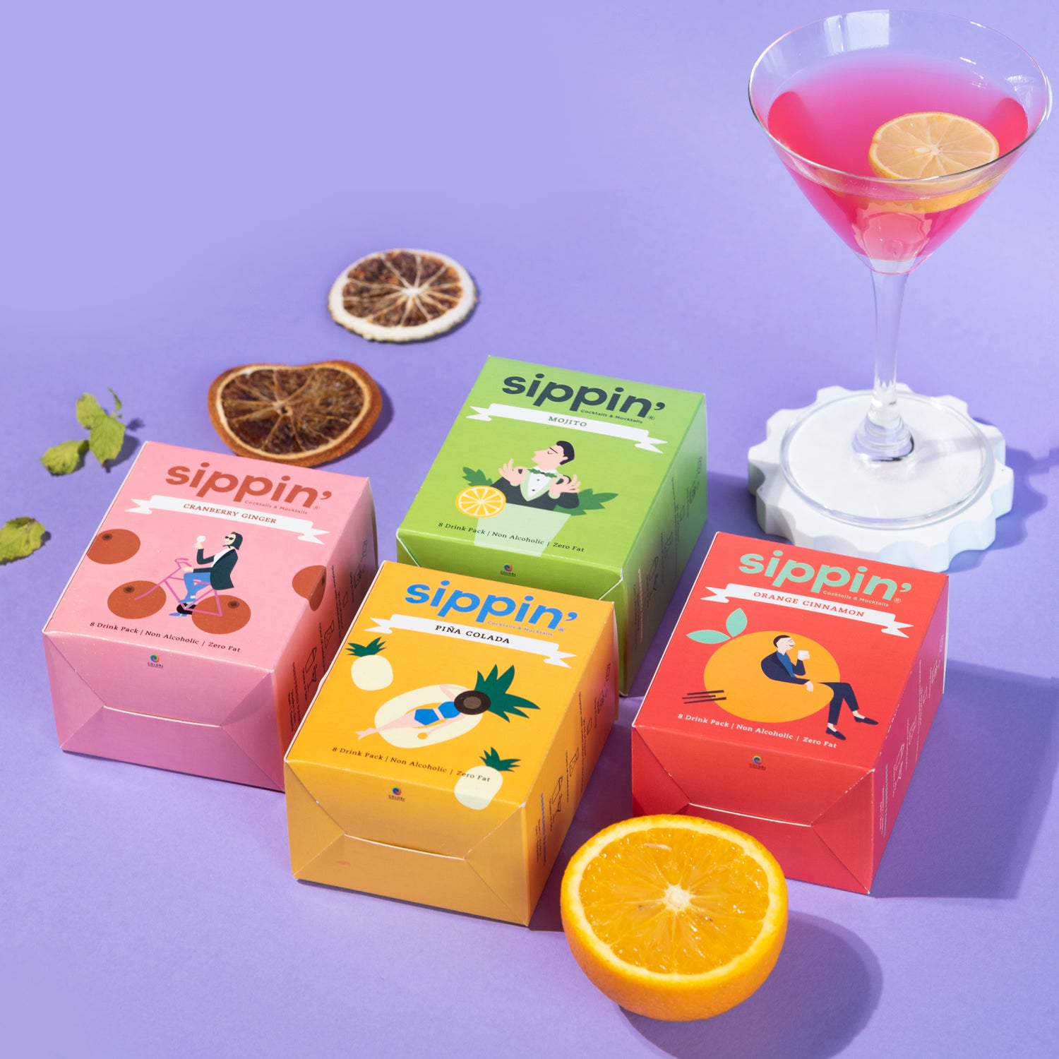 1 Mojito + 1 Pina Colada + 1 Orange Cinnamon + 1 Cosmo Cranberry (makes 32 drinks)
