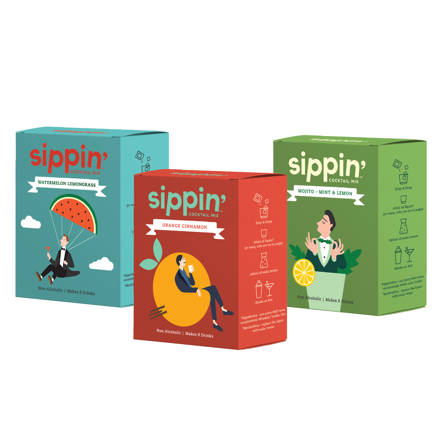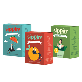 Contents: 1 Orange Cinnamon Pack, 1 Mojito Pack, 1 Watermelon Lemongrass Pack (makes 24 drinks)