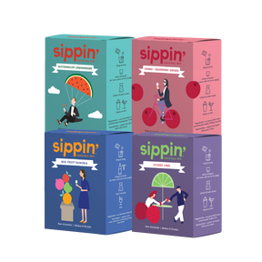 Contents: 1 Lychee Lime Pack, 1 Mix Fruit Sangria Pack, 1 Watermelon Lemongrass Pack, 1 Cranberry Ginger Pack (Makes 32 drinks)