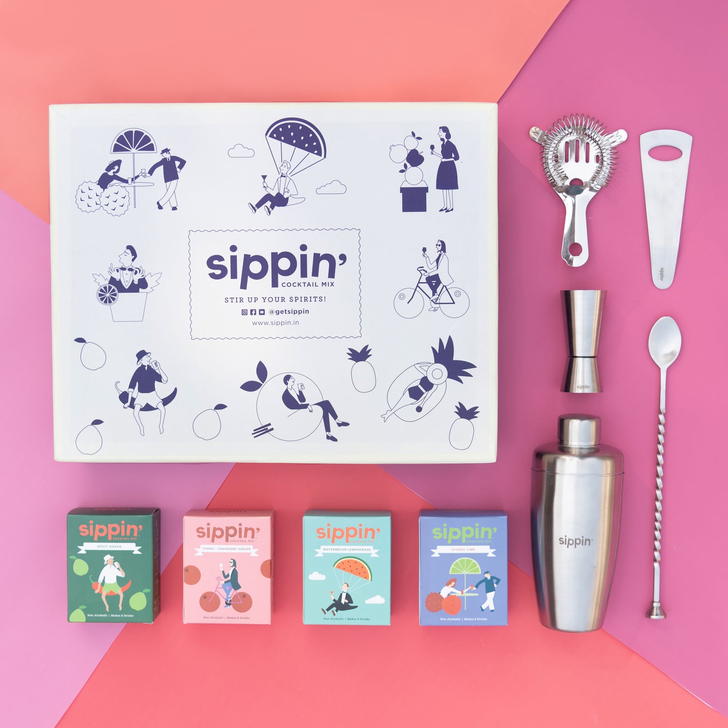 - 4 Sippin' boxes ( They can be assorted, or single flavour packs. Each pack consists of 8 sachets, so you’ll be sorted for 32 drinks.)
